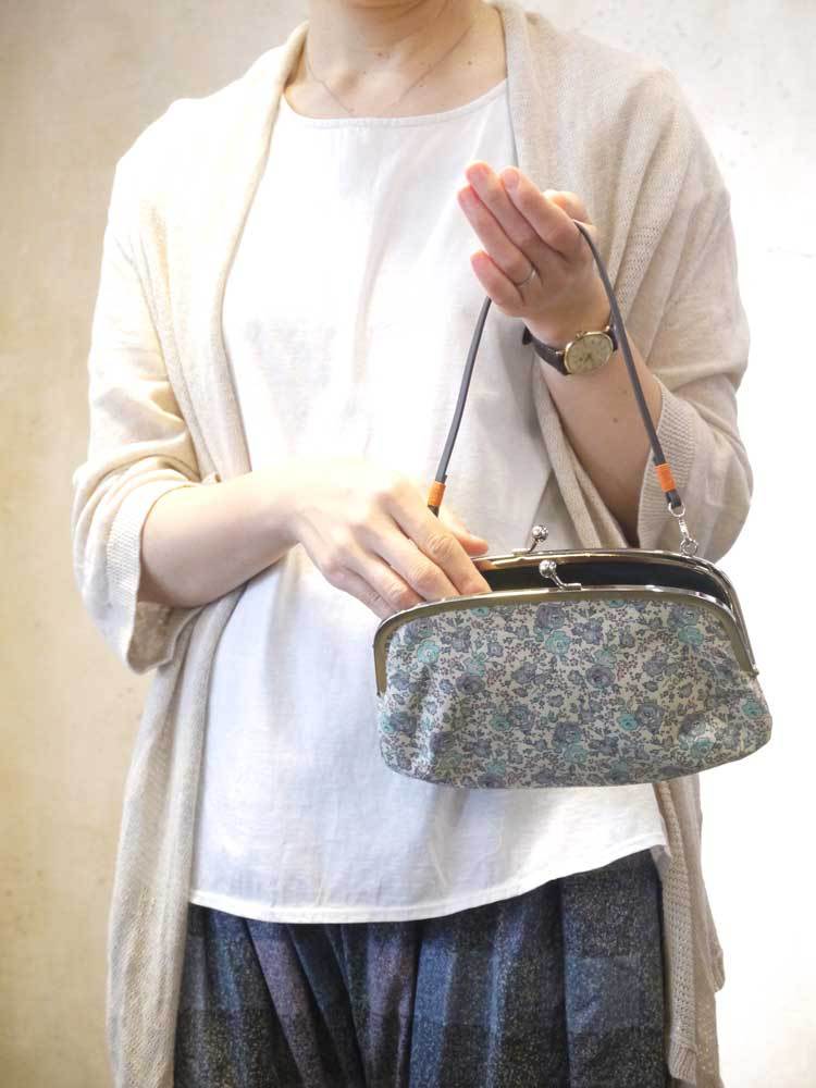 <袋素材> 表地:タナローン 綿100%、裏地:レーヨン100% <口金素材> 鉄 <革ヒモ素材> 牛革