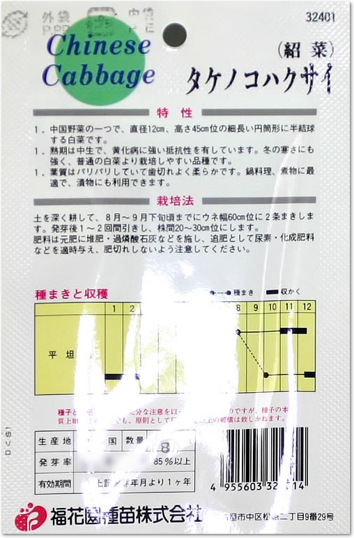 フクカエン 中華野菜 タケノコハクサイの種(タネ)【メール便OK】【野菜のタネ】