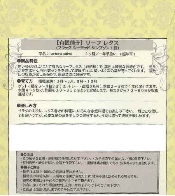 リーフレタス【ブラックシーデッドシンプソン】緑★オーガニックシード(有機種子)0.7g[春まき][秋まき]
