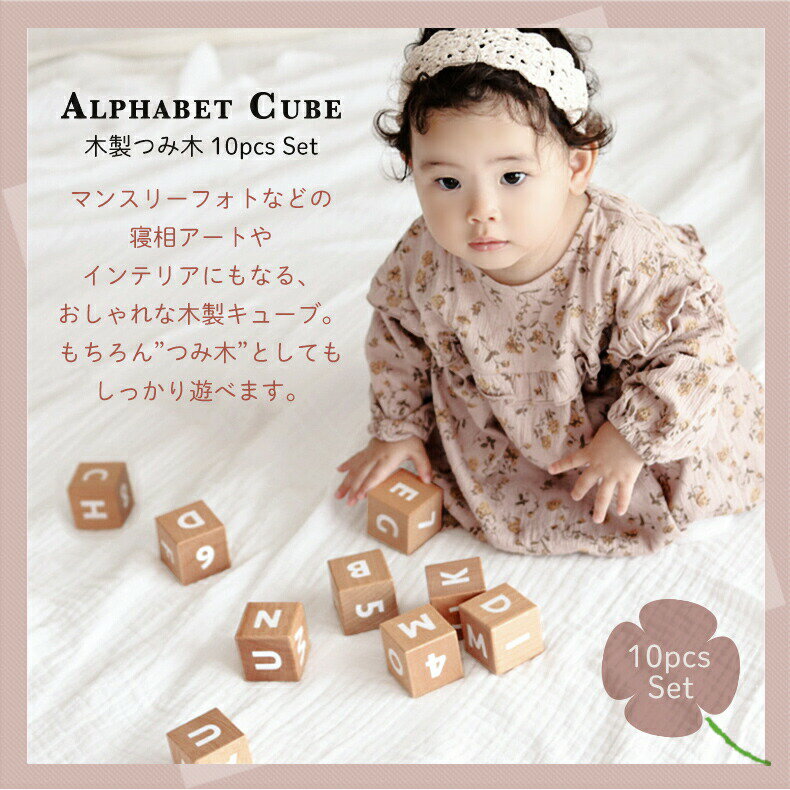 商品名<すさびオリジナル>木製つみ木 アルファベットキューブ 10ピースセット 説明 マンスリーフォトなどの寝相アートや、インテリアにもなる おしゃれな木製キューブ。